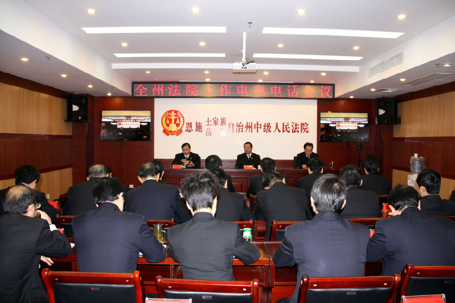 恩施法院网讯(通讯员 王云华)2月28日,全州法院工作电视电话会议召开。会议总结回顾过去一年的工作,表彰2012年度相关工作优胜单位,深入分析当前法院工作面临的新形势、新任务,安排部署2013年重点工作。州中院党组成员、专委、各部门负责人在主会场参会,各县市法院党组成员、专委及部门负责人在分会场参会。