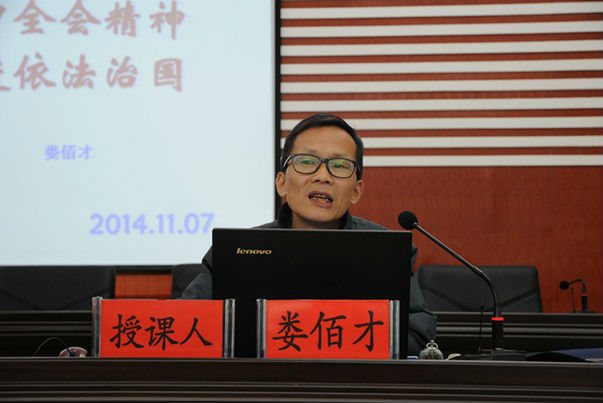 恩施法院网讯(通讯员 何威)为深入学习贯彻党的十八届四中全会精神,深刻领会全面推进依法治国的重大意义,准确把握全面推进依法治国的指导思想、总目标、基本原则和重点任务,11月7日,宣恩县法院邀请县委党校副校长、省基层理论宣讲员娄佰才作了题为《学习四中全会精神,全面推进依法治国》的专题辅导。